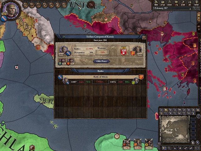 そうしているうちに戦勝点が100%になったので講和したのだが 遠隔地のノルウェーとシチリア両方を守るのは難しいという点からノルウェーを手放すことにした。