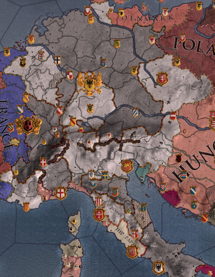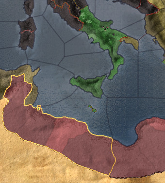 : そう…。でも、アルプスの北の揉め事なんだし、イタリアは関係ないわね。 : いや。シチリアは反乱側についている。 : なぜそんなことを!?反乱なんてすぐに鎮圧されちゃうでしょうに。 : そうでもないぞ。地図上では互角に見える。