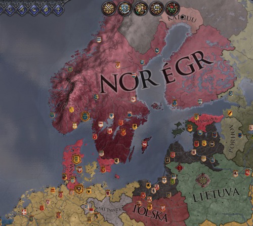 ということで、1337年シナリオ、その中でも国土を削られているデンマーク王国でプレイしていこうと思います。 デンマーク人の人名はデンマーク語固有名詞カナ表記小辞典に準じて表記していますが、見当たらない場合は適当に推測してます。
