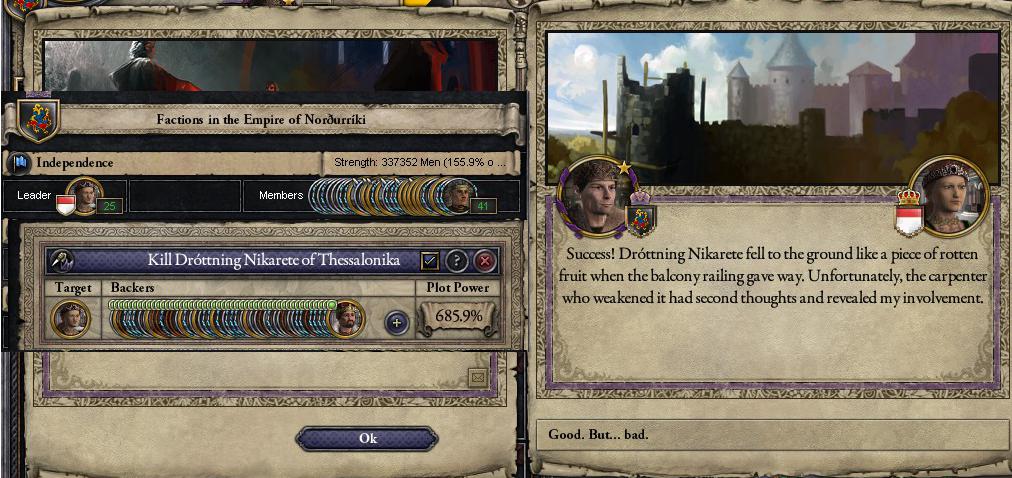 ノルドの皇帝ヴァルデマは、徒に国政を行い、その信心が少なく、あまつさえ諌言せんとしたテッサロニキ専制侯を弑した。