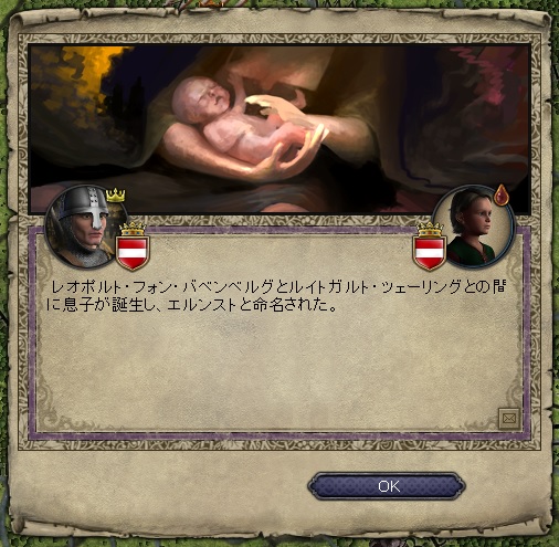 1076年2月。レオポルトとルイゲルトとの間に長男が生まれ、待望の後継者であるエルンストが産まれた。