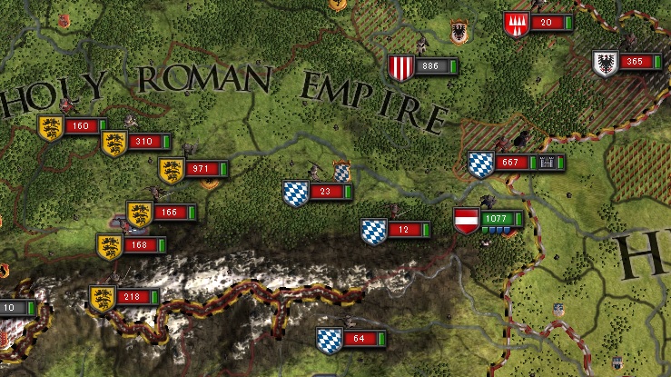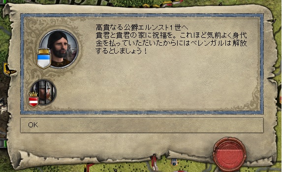 その頃、神聖ローマ帝国内では北イタリア諸侯の独立か相次ぎ、エルンストもオーストリア公軍を率い、その鎮圧に奔走していた。 そんな最中、元帥ベレンガルが敵方に囚われるということもあったが、すぐに身代金を支払い解放させた。