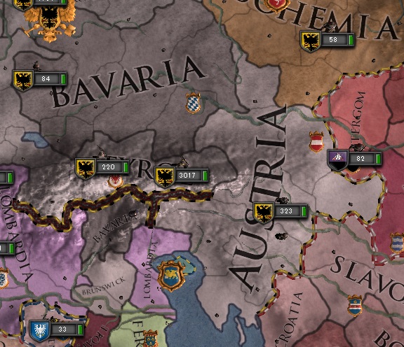 バイエルン王国の残る領土を有するのは、バヴァリア公爵家、チロル公爵家、そしてオーストリア公の慣習的領土のうち 唯一残ったズノーモ州を有するボヘミア王家であった。 いずれの国も強国であり、たとえあと1州であっても、そう簡単に得ることはかなわないが、レオポルトは評議会に対し、 バベンベルグ家の今後の方針としてバイエルン王国再興を目指すことを宣言したのだった。