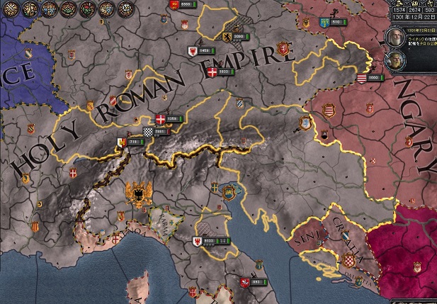 1301年3月。チロル公爵ウルリヒの父であるフェララ公爵が死亡し、ウルリヒはフェララ公爵領を 相続した。バイエルン王国の版図はイタリアにも拡がった。