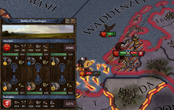ともかく、先ずは艦隊から上陸した常備軍4000名、それに陸路で徴集兵6500名が合流し、968年の中頃にはゼーラントからホランド、西フリースランドの占領が完了した様である。そこで漸く中フランクの同盟国、ビザンツ・ボヘミア軍の合計約12000名が到着。ゼーラントへの進路を妨害するスカンジナヴィア軍と、ヴラーディンゲンで全面衝突となる。