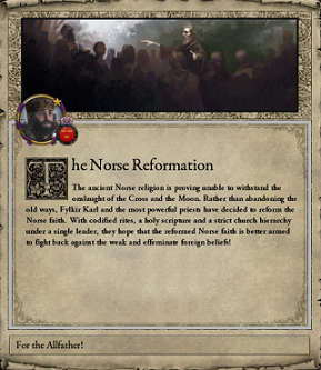 カルル自身も、神々への理解を深めようと書を読み漁った時期があった。その時に身に付けた知識は実際、王務に役立てられているが、やはりカルルにとっては覇業の完遂こそが本分であった。神学の探究は宮廷預言者であるギュリドに司らせて、成果を待つ姿勢であった事を責める事は誰もしなかった。 エイナルは、にっか、と笑うと、手許の書束を並べ始めた。