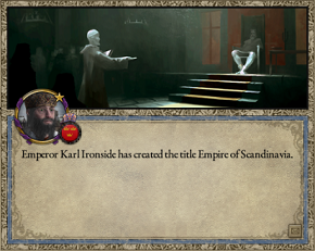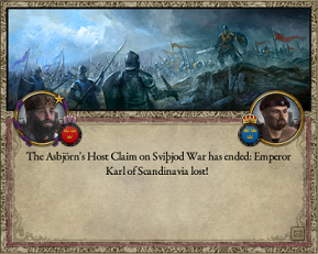 スカンジナヴィア帝国は成ったが、こうして瞬く間に分裂の憂き目に遭った。これは、統一によって期待された国力が半減した以上の損失を意味した。 ウプサラ大寺院……ノルドの信仰の聖地である3大寺院の一角が失われたのだ。これは、フローニ朝が密かに目標としている、宗教形態の革新が遠のくのみならず、皇帝の求心力そのものに悪影響を及ぼす可能性がある事態である。 停戦はスカンジナヴィア帝国側からの開戦は制限しない、しかし、スウェーデンにはアスビョルンの呼び寄せた3万の大軍勢がいる事には変わりが無く、アンラウフ王が行った様な、ウプランドのみの割譲を目的とした開戦も現実的ではない。