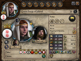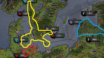 869年1月9日、グドフリド王子が成人した事により、正式にフレイヤ女王の王配として迎えられる。 つまり、フレイヤとイヴァルの間に正式な同盟関係が成立したのである。 これは征服行に加勢を得る目的があったのは勿論であろうが、フレイヤの目的が初めからデンマーク統一にあったのだとしたら、 シェラン~スコーネを支配するイヴァルの兄弟、"蛇目の"シグルドとの決戦に、イヴァルが介入しない様に牽制する意味もあったのかも知れない。 ともかく、それに前後してフレイヤは残るオボトリト族の版図であるメクレンブルクとラストクの征服を命じている。 しかし、フレイヤはオボトリト族の大族長・ムシウォイとダイミンの族長・ウィツロウの間にある同盟関係を確認しておらず、 予想外の増援によって、野戦には勝利はしたものの、1200あった軍団の数を700まで減らしてしまい、 ヴェリグラドの包囲が不完全なまま戦況は1年ほど停滞した(彼女の「無策女王」という二つ名は、恐らくこれに由来する)。 先立って同盟を結んだイヴァルに加勢を求めようか思案するも、イヴァル軍はスコットランドの攻略中。 フレイヤはその攻略戦に、オボトリト征服後に兵を出す約束で名前だけの参戦の表明をしており、そこで助力を求めてはユラン軍の面子は丸潰れである。 資金が集まるのを待ち、傭兵を雇うべきかと議論される中、ある報告が届く。