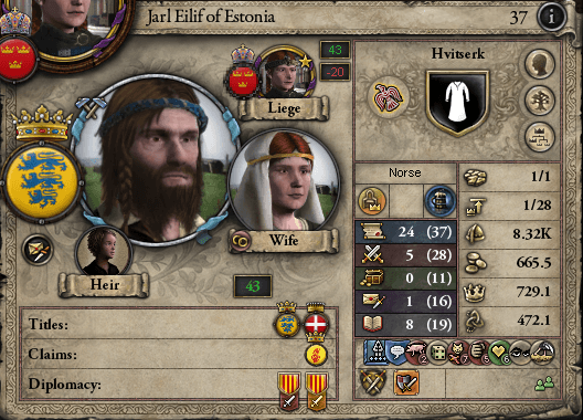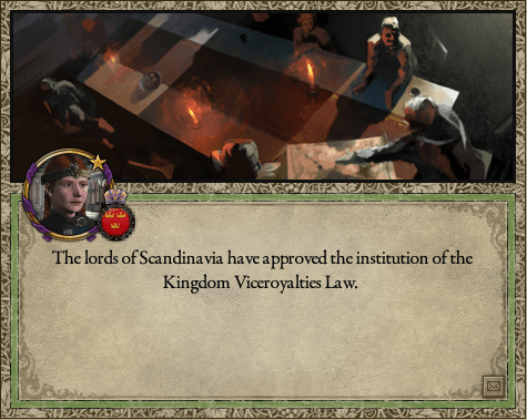イングランド獲得と東方領域の分離から約2年半の間、スカンジナヴィアは大聖戦で消耗した兵力や財力の回復、そしてイングランド各所で起こる暴動への対処に追われていた。レスターやノーフォークでは教化も進み、イングランド支配の磐石化も見えて来た1043年4月の上旬……帝都・ホーセンスは騒然としていた。