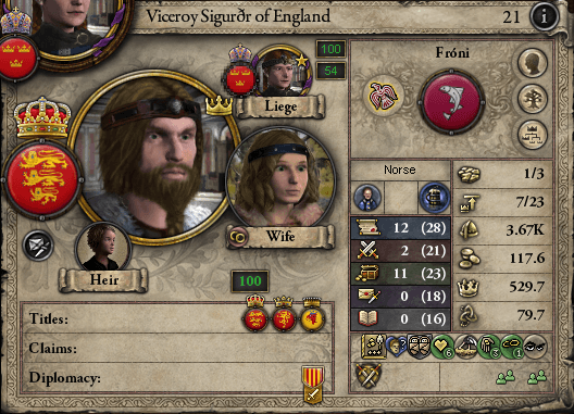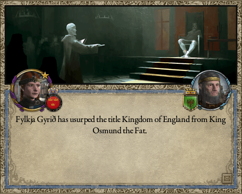 終戦講和時、オスムンド2世はイングランド王位をギュリドに禅譲し、以降ポウィス王を名乗る。しかしこれが実質の剥奪であった事は明らかだ。ともかく、これによってイングランドは名実共にスカンジナヴィア帝国に組み込まれる事となった。 とはいえ、ギュリドの卓抜な政務能力を以ってしてもイングランドの広大且つ豊かな領土を全てホーセンスの宮廷で直轄管理する事は不可能だったので(当然である)、新たに族長達が封じられる事となった。