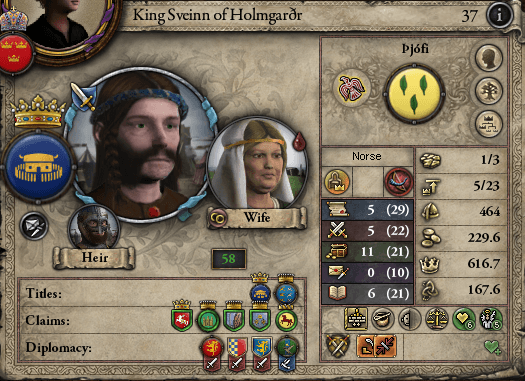 1054年時点のホルムガルド王・スヴェン。凄まじい勢いで迫る正教徒に対してかなりの領地を失ってしまった。