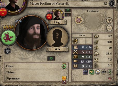 彼はシグルドの戴冠時に(デンマーク王は伝統的にユラン=シェラン大族長位も同時に継承する為)スコーネ大族長位を下賜されており、その高い管財能力から家令長を任されていた人物である。前摂政・トールフィンは