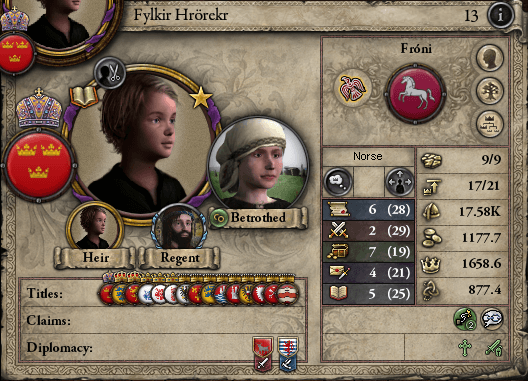 選ばれたのはイェストリークランド族長・ホラーフンの娘、インリング氏族のマエルである。ホローレクの10歳年上であったが、重要視されたのは彼女の社交能力の高さで、家臣の膨大化によって効率的な民会の統制を維持するのが難しくなっていた為、優れた補佐役となるだろうと考えられての事だった。