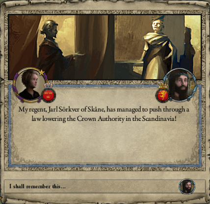 1052年頃、民会は新たな摂政にスコーネ大族長・ブレイク氏族のソルクヴェルを選出している。