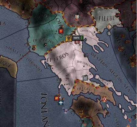 成人を待つ間、とりあえず淡々と北イタリアに残る反乱軍の拠点の制圧に取り組んでいる頃、 ギリシャではエピルス公国がキクラデス諸島に放逐されていた。