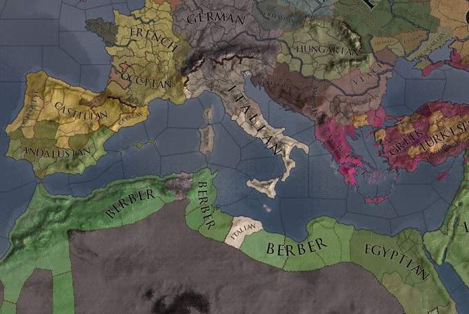 北アフリカの征服地には徹底的にイタリア人領主を封じているのだが、ベルベル文化がしぶとく、全く転向しない。 そのくせ、皇帝直轄地の一部が、あっさりドイツ文化になってたりする。