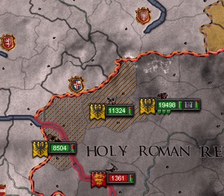 dietmar.jpg まずいことになったな。 nikolaus.jpg はい。 dietmar.jpg Pelayoは姉の婿だし、Gilbertは姪の夫だ。Wernerはあの性格から言ったら従兄弟とは言え信頼できないとは思っていたが……。 nikolaus.jpg しかし、こうなってしまったからには仕方がないでしょう。 dietmar.jpg 今、頼りになるのはお主だけだ。 nikolaus.jpg 敵方は、単純な軍勢でいえば、我が方を上回っています。 dietmar.jpg どうすれば良い?父の方法を踏襲するか*1nikolaus.jpg うーむ……、しかし、今回はそれもなかなか難しいでしょう。 dietmar.jpg どういうことだ? nikolaus.jpg 傭兵を雇うところまでは賛成です。それ以外に方法はないでしょう。 dietmar.jpg では、それを用いて決戦といこうじゃないか。 nikolaus.jpg そういう訳にも行かないのですよ。敵方の領地が遠いですから、敵軍を集合前に叩くのは難しいでしょう。 dietmar.jpg それでは、どうするというのだ? nikolaus.jpg 敵方はイスパニアとブリタニアそしてアキテーヌの主力を集めて、西方での決戦を狙ってくるでしょう。 dietmar.jpg 決戦の地はどこだ?スイスか?バイエルンか? nikolaus.jpg いいえ。決戦は避けるのですよ。   イタリア、ポーランド、ボヘミア、大モラヴィア、そしてバイエルンから集められた2万5千の軍勢は約2万の傭兵と5000の直属軍を加え東方へと進軍した。 それは、一見、叛乱軍の主力からの逃避行のようにも思われた。 ハンガリーはイングランド王領となっていたものの、西方戦線に重きを置く叛乱軍は殆ど守備隊を置いてはいなかったからだ。   hungary.jpg