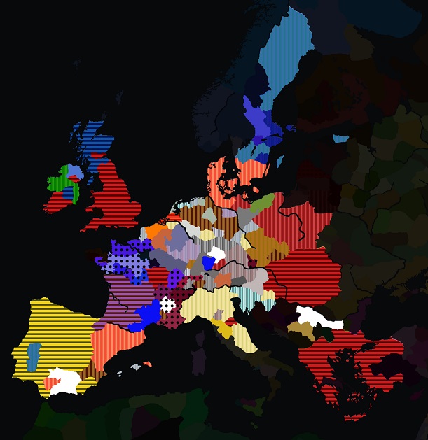 なお、水玉模様は皇帝が直接保有するブルグンド王国、そしてフランス王国の領域である。
