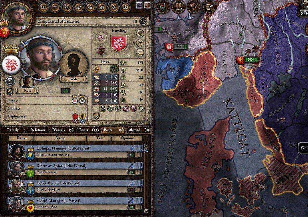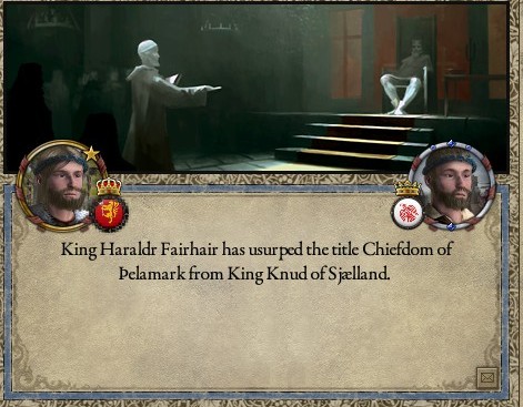 視点をスカンジナヴィア半島に戻す 周辺部族にもRagnarrの息子がおり、その勢力はHaraldrにとって無視できないものであった しかしSigurdr'Snake-in-the-eye'は既に没しており、長子のKnudが跡を継いでいた