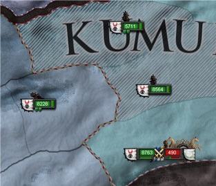宣戦を布告して挙兵すると、友達が別行動にしようと言い出した。 山を挟むので最初は攻めがたかったけどそのうち包囲できるようになり、 だんだん楽しいと感じるようになった。 包囲してるうちにそのプロヴィンスは思ってたより肥沃だし戦略上の要地だし併合してもいいと思った。 いや、正直併合したいと思った。