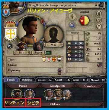 バリアンは時の王の ボードゥアン4世(病気持ち)の妹(実際は姉)でヒロインの シビラと恋に落ちる。(実際は間男)