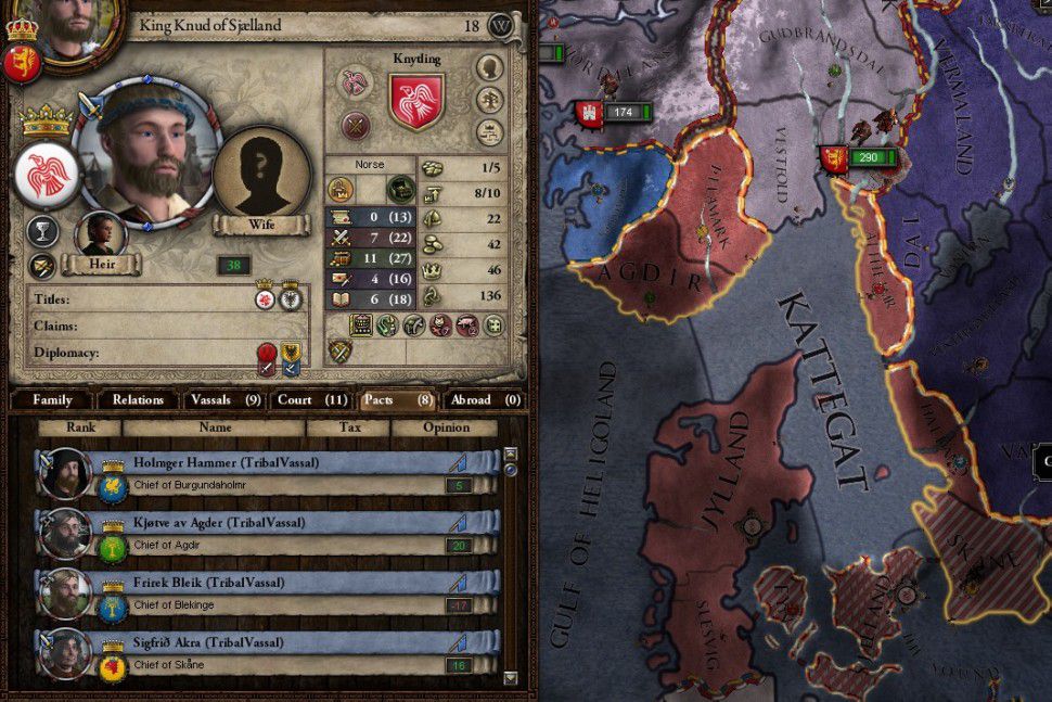 統一への障害になりそうな勢力はSjelland大族長 Sigurdr'Snake-in-the-eye'のみであり、他は領地一つの弱小部族である