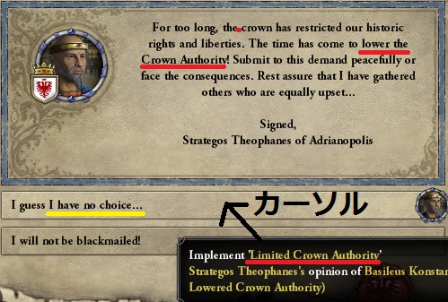上図では王権の低下を要求するイベントですが、独立などの恐ろしいものもあります。