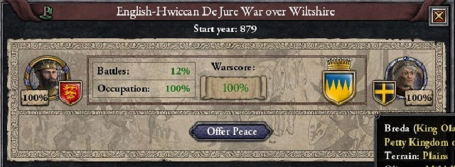 1、ウィルトシャー伯領 西暦879年4月15日 開戦、 西暦880年12月28日 獲得。