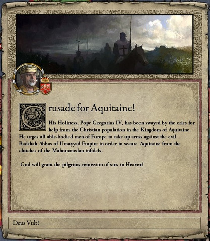 また、対デハイバース戦争中の西暦900年3月9日、第1回十字軍が宣言され多数の十字軍戦士がイスラムに占領されたアキテーヌに向かっていった。