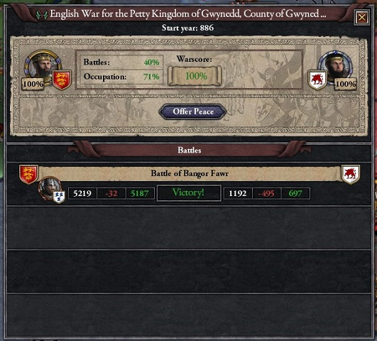 2、グウィネズ伯領(南)とペルフェドゥラド伯領(北) 西暦886年5月1日 開戦、 西暦887年12月14日 獲得。