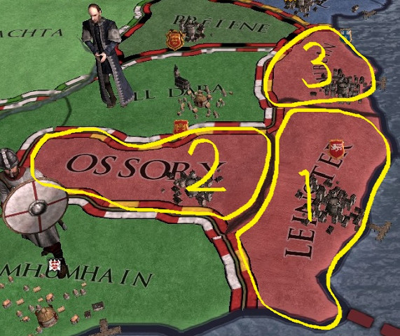 2、Ossory伯領 西暦911年4月13日 開戦、 西暦911年12月11日 獲得。