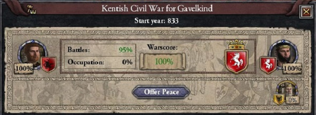 西暦833年3月17日、ケント公国を二分する初めての内戦が勃発した。 長男・三男+従兄弟VS二男・四男の戦いは、同年12月25日一年もたたないうちに終戦した。